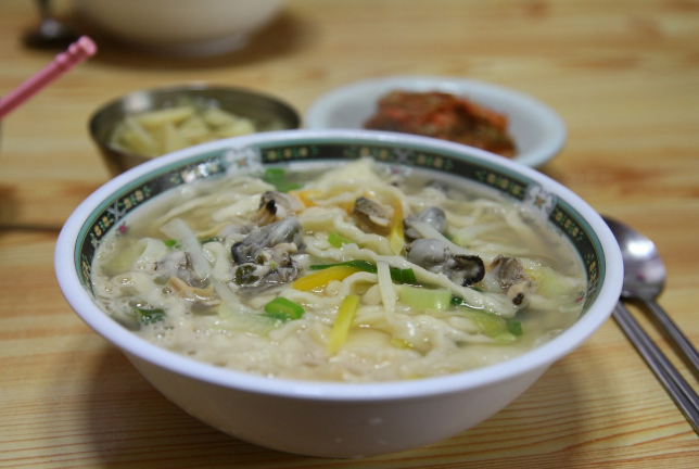 바지락을 넣어 해산물의 깊은 감칠맛을 강조한 칼국수로, 국물이 맑고 시원한 것이 특징이다.